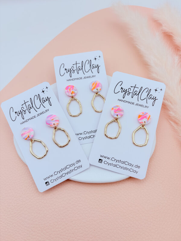 Polymer Clay, Edelstahl (Ohrstecker/Creolen), UV-Resin, Silikonstopper, ggf. Glitzer, Acrylfarbe, Wasserbasierter Lack, Farbpigmente