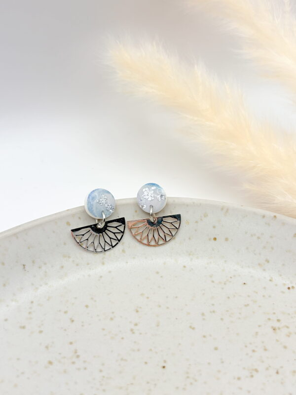 Polymer Clay, Edelstahl (Ohrstecker/Creolen), Messing, Uv-Resin, ggf. Glitzer/Acrylfarbe